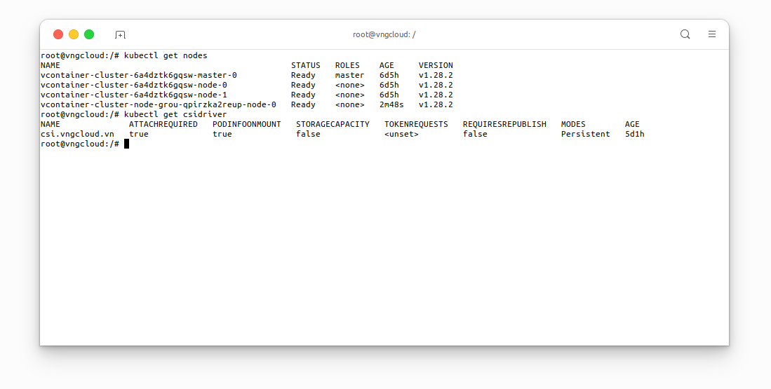 This laboratory exercise is conducted on a Kubernetes cluster comprising one master node and three worker nodes, all equipped with the vContainer Storage Interface plugin. The following resources are required: