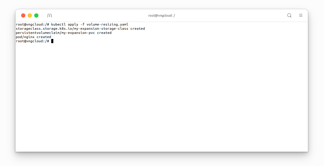 kubectl apply -f volume-resizing.yaml