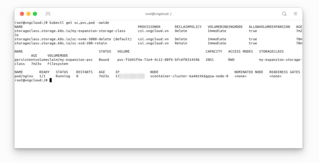 From the VNG CLOUD portal, users can verify the new size of the PersistentVolumeClaim: