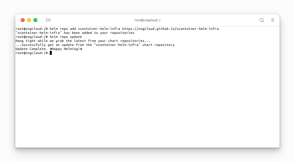 helm repo add vcontainer-helm-infra https://vngcloud.github.io/vcontainer-helm-infra